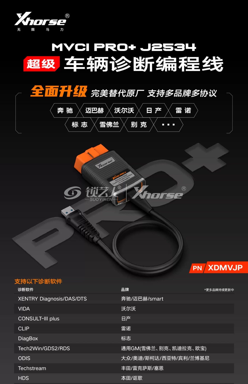Xhorse-车辆诊断编程线二代 MVCI PRO+J2534